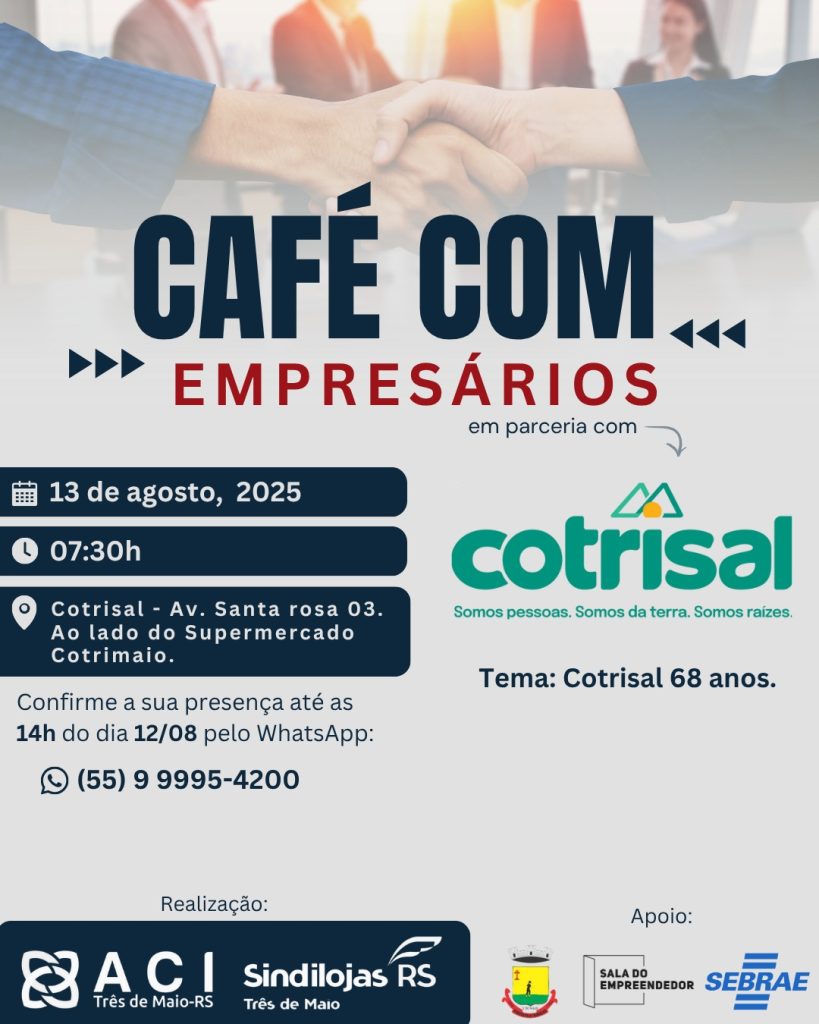 É com grande prazer que convidamos a todos para mais uma edição do Café com Empresários, com a Cotrisal em comemoração aos seus 68 anos. ☕️🏡