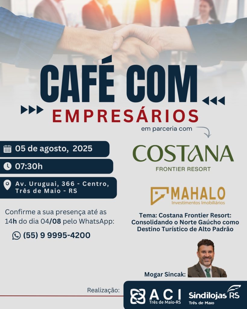 É com grande prazer que convidamos a todos para mais uma edição do Café com Empresários com o principal sócio da Costana Frontier Resort, Mogar Sincak. ☕️🏡