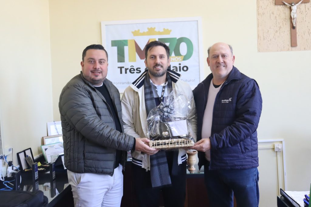 Na manhã da quinta-feira, 03 de julho aconteceu a entrega, o Presidente da ACI, Jesildo Moura de Lima e o Presidente do Sindilojas, Dilson José Mireski, compareceram na Prefeitura para entregar uma lembrança em comemoração ao aniversário do Prefeito Marcos Vinicius Benedetti Corso.