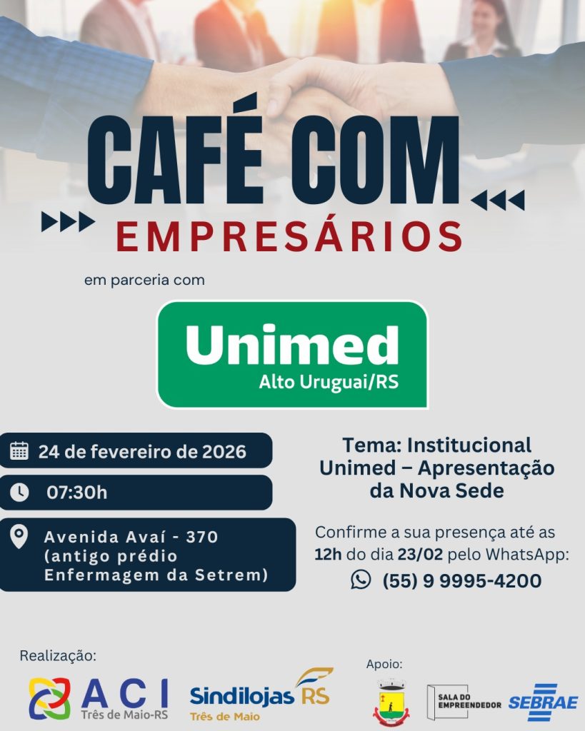 É com grande prazer que convidamos a todos para mais uma edição do Café com Empresários, em parceria com a UNIMED Alto Uruguai/RS. ☕️