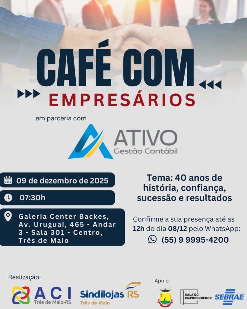 É com grande prazer que convidamos a todos para mais uma edição do Café com Empresários, em parceria com o Escritório Ativo Gestão Contábil.☕️