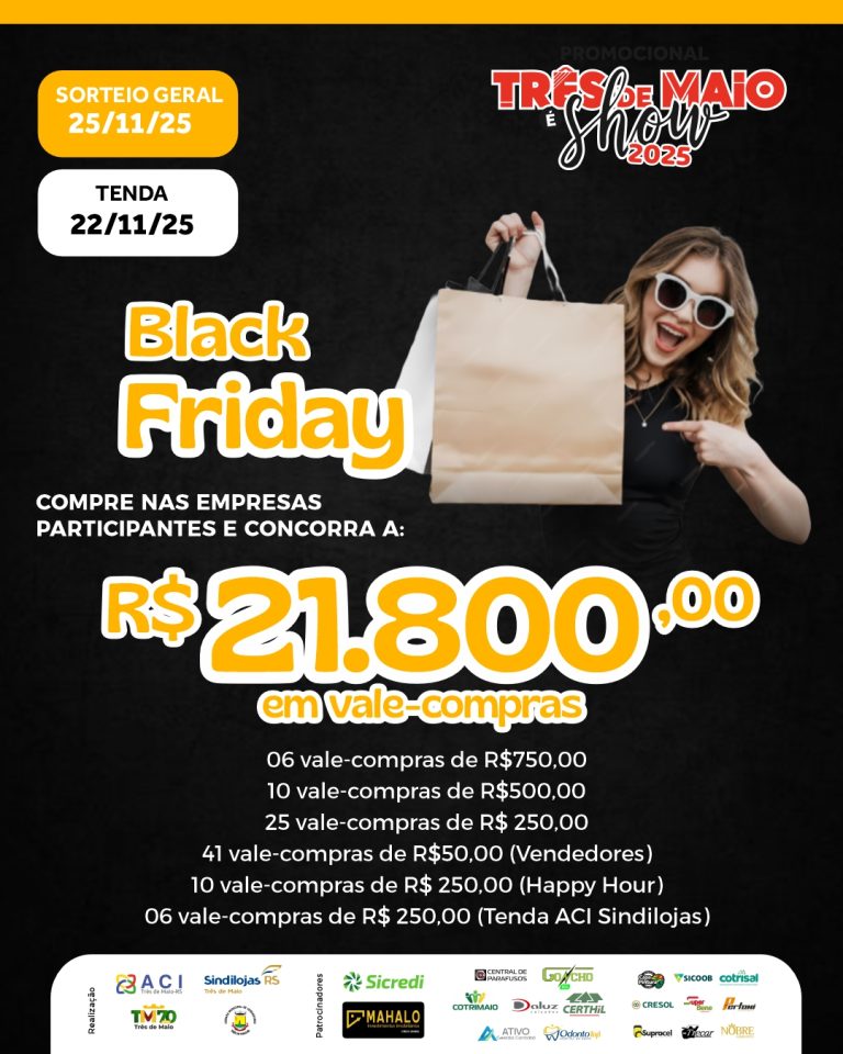 PROMOCIONAL TRÊS DE MAIO É SHOW 2025 – CAMPANHA BLACK FRIDAY. 8ª Campanha do Promocional Três de Maio é Show 2025, se liga nas datas: