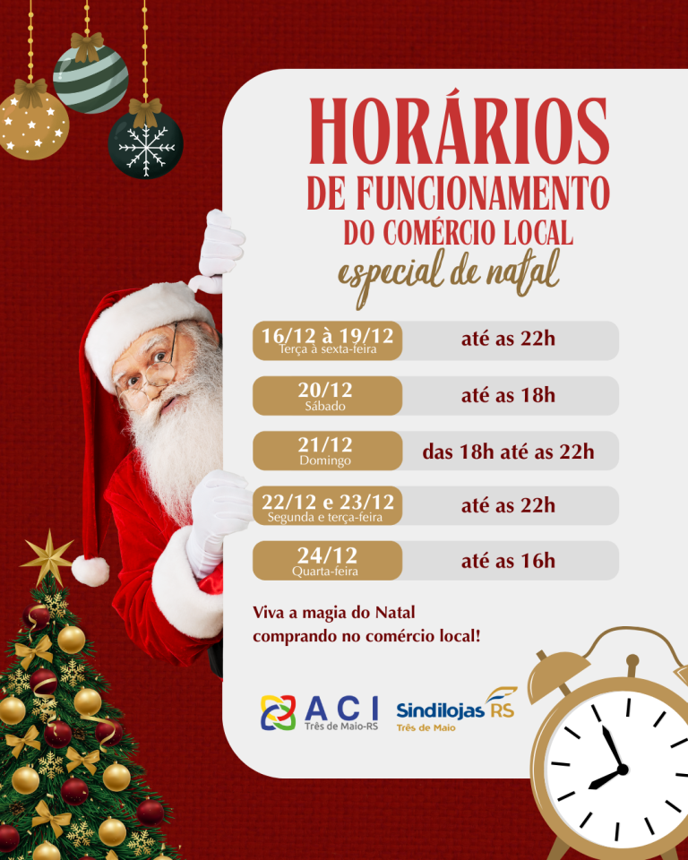 Confira os horários oficiais autorizados para o funcionamento do comércio no período de Natal, conforme legislação vigente, para que todas as empresas possam se organizar